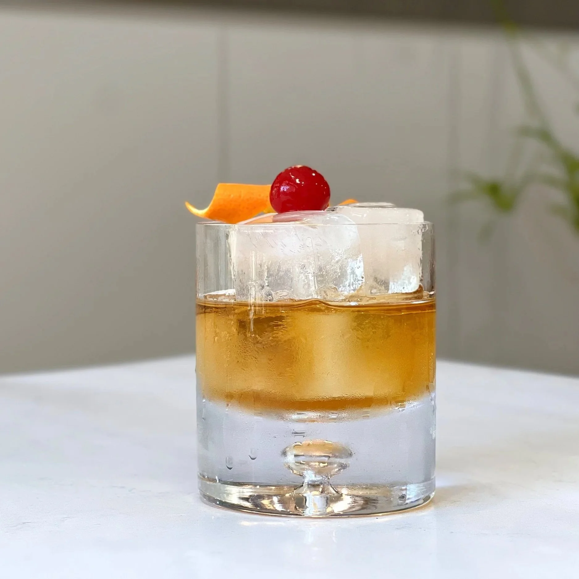 Grab your favourite Old Fashioned glass, pour in the spirit, fill the glass with ice (or use one large rock), then top up with the